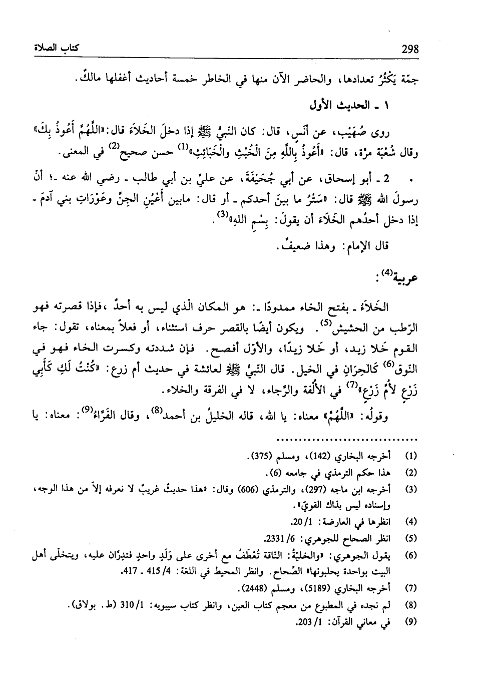روى صُهَيب، عن أنسٍ، قال: كان النّبيُّ - صلّى الله عليه وسلم - إذا دخلَ الخَلَاءَ قال: "اللَّهُمَّ أَعُوذُ بِكَ" وقال شُعْبَة مرَّة، قال: "أعُوذُ بِاللهِ مِن الخُبْثِ والخْبَائِثِ" (¬1) حسن صحيح (¬2) في المعنى.