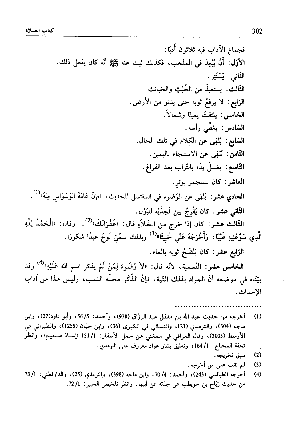 (¬1) أخرجه من حديث عبد الله بن مغفل عبد الرزّاق (978)، وأحمد: 5/ 56، وأبو داود (27)، وابن ماجه (304)، والترمذي (21)، والنسائي في الكبرى (36)، وابن حبّان (1255)، والطبراني في الأوسط (3005)، وقال العراقي في المغني عن حمل الأسفار: 1/ 131 "إسنادُ صحيح"، وانظر تحفة المحتاج: 1/ 164، وتعليق بشار عواد معروف على الترمذي.