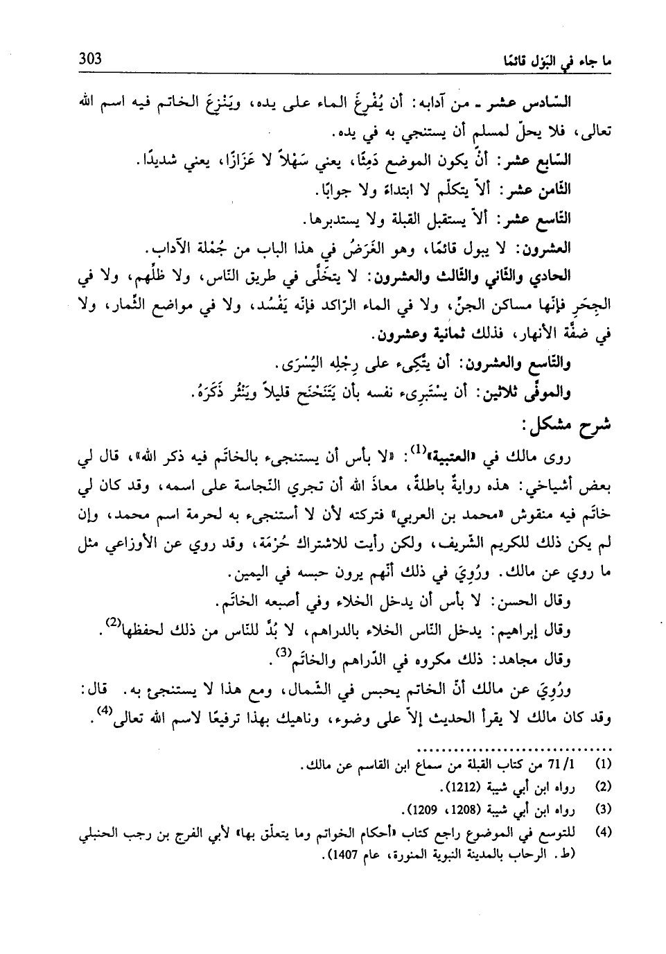 (¬4) للتوسع في الموضوع راجع كتاب "أحكام الخواتم وما يتعلّق بها" لأبي الفرج بن رجب الحنبلي (ط. الرحاب بالمدينة النبوية المنورة، عام 1407).
