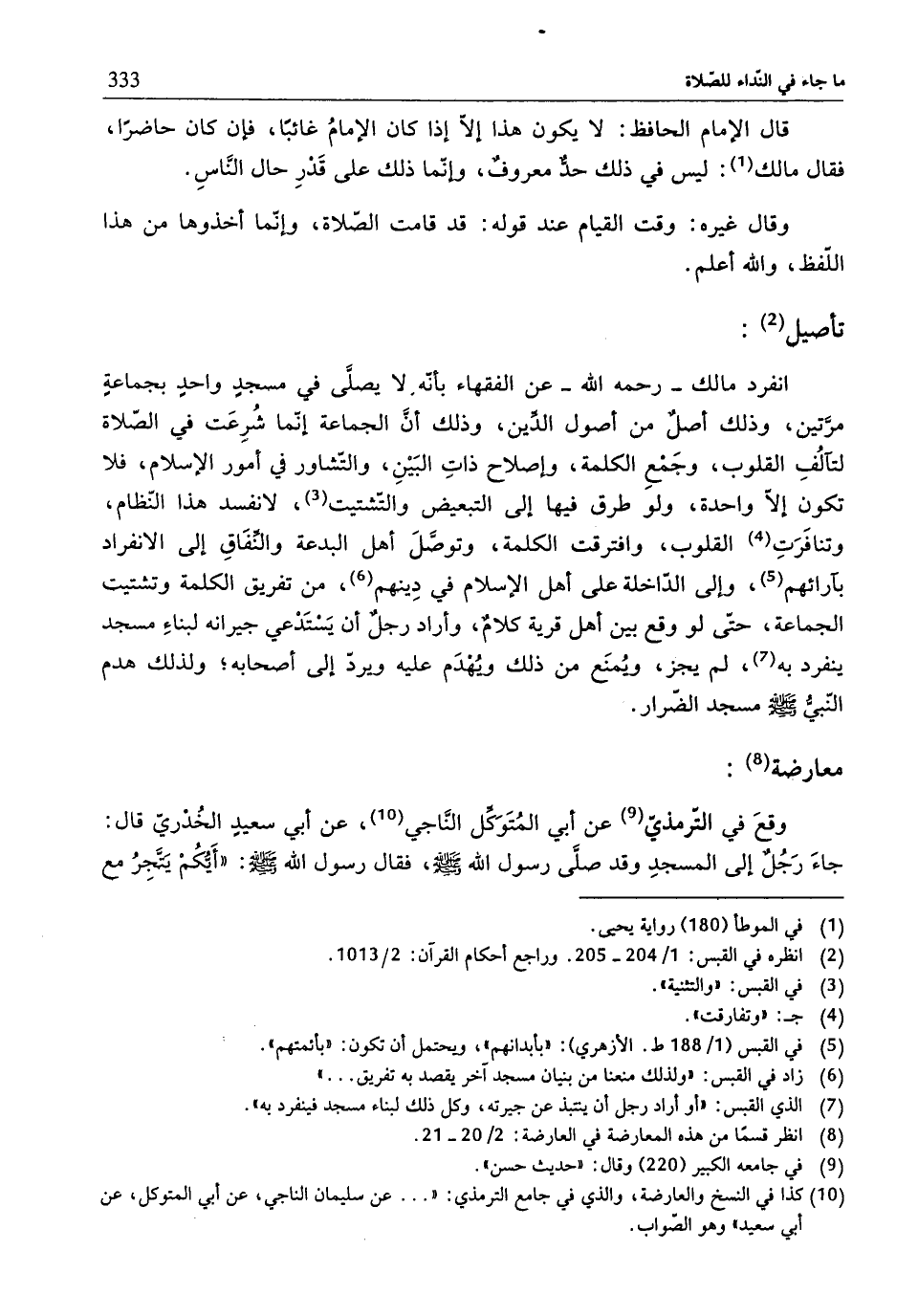 (¬6) زاد في القبس:"ولذلك منعنا من بنيان مسجد آخر يقصد به تفريق. ... "