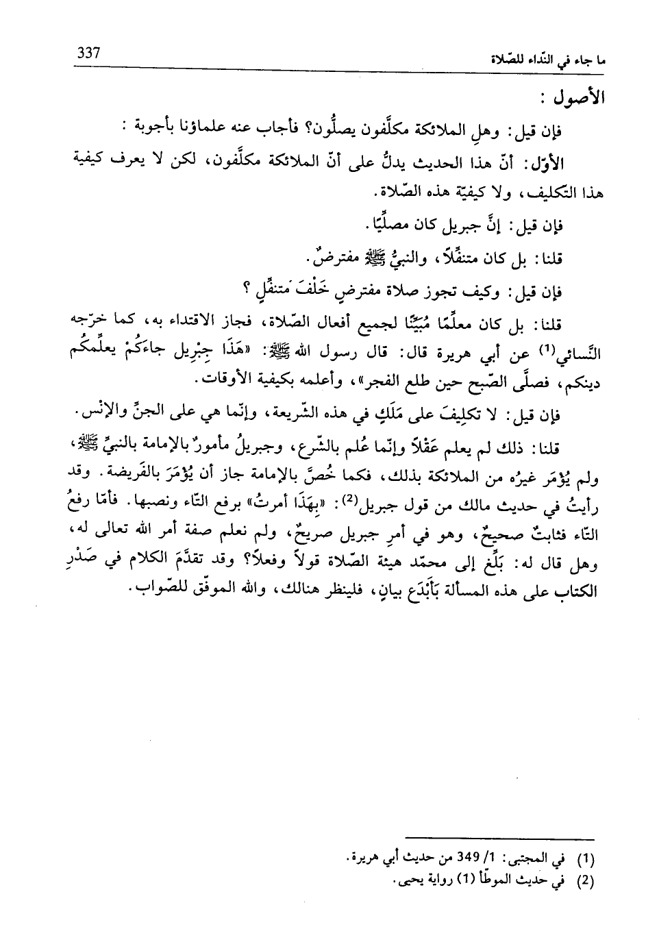 قلنا: ذلك لم يعلم عَقلًا وإنّما عُلم بالشّرع، وجبريلُ مأمورٌ بالإمامة بالنبيِّ - صلى الله عليه وسلم -، ولم يُؤمَر غيرُه من الملائكة بذلك، فكما خُصَّ بالإمامة جاز أنّ يُؤْمَرَ بالفَريضة. وقد رأيتُ في حديث مالكٌ من قول جبريل (¬2): "بِهَذَا أمرتُ" برفع التّاء ونصيها. فأمّا رفعُ التاء فثابتٌ صحيحٌ، وهو في أمرِ جبريل صريحٌ، ولم نعلم صفة أمر الله تعالى له، وهل قال له: بَلِّغ إلى محمّد هيئة الصّلاة قولاً وفعلًا؟ وقد تقدَّمَ الكلام في صَدْرِ الكتاب على هذه المسألة بَأبْدَع بيانٍ، فلينظر هنالك، والله الموفّق للصّواب.