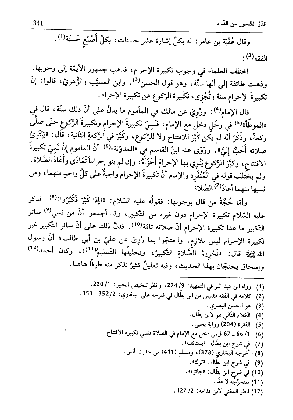 (¬2) كلامه في الفقه مقتبس من ابن بطّال في شرحه على البخاريّ: 2/ 352 - 353.