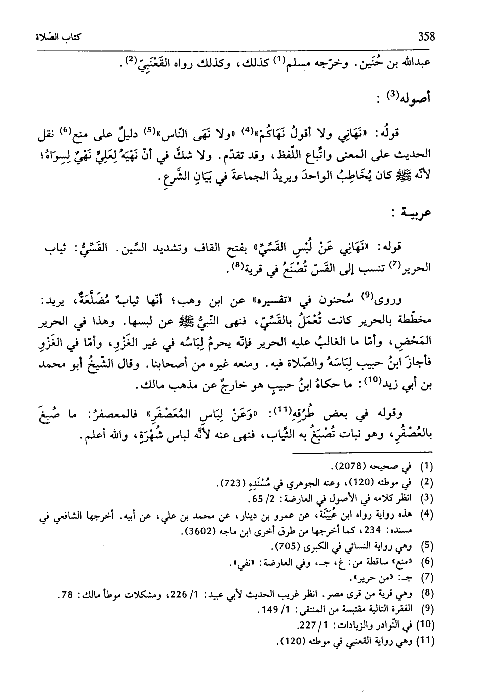 وروى (¬9) سُحنون في"تفسيره" عن ابن وهب؛ أنّها ثيابٌ مُضَلَّعَةٌ، يريد: مخطّطة بالحرير كانت تُعْمَلُ بالقَسِّيّ، فنهى النّبيُّ - صلّى الله عليه وسلم - عن لبسها. وهذا في الحرير المَحْضِ، وأمّا ما الغالبُ عليه الحرير فإنّه يحرمُ لِبَاسُه في غير الغَزْوِ، وأمّا في الغَزْوِ فأجازَ ابنُ حبيب لِبَاسَهُ والصّلاة فيه. ومنعه غيره من أصحابنا. وقال الشّيخُ أبو محمد بن أبي زيد (¬10): ما حكاهُ ابنُ حبيبٍ هو خارجٌ عن مذهب مالكٌ.