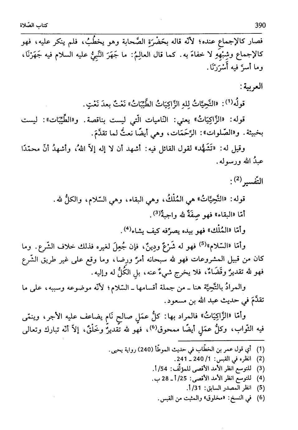 قولُه (¬1): "التحِياتُ لِلهِ الزَّاكِيَاتُ الطَّيِّبَاتُ" نَعْتٌ بعدَ نَعْتٍ.