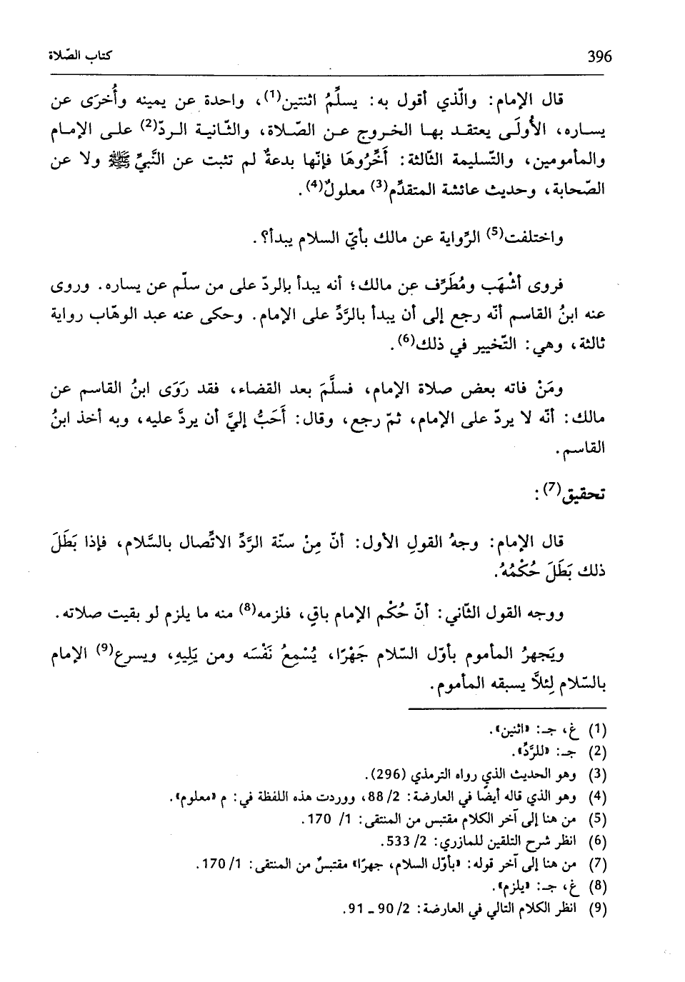 (¬6) انظر شرح التلقين للمازري: 2/ 533.