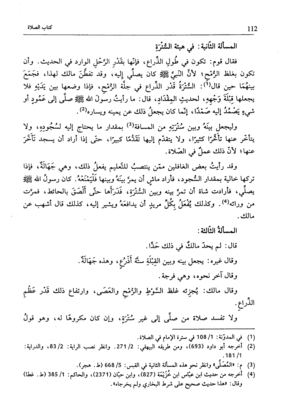 (¬1) في المدؤنة: 1/ 108 في سترة الإمام في الصّلاة.