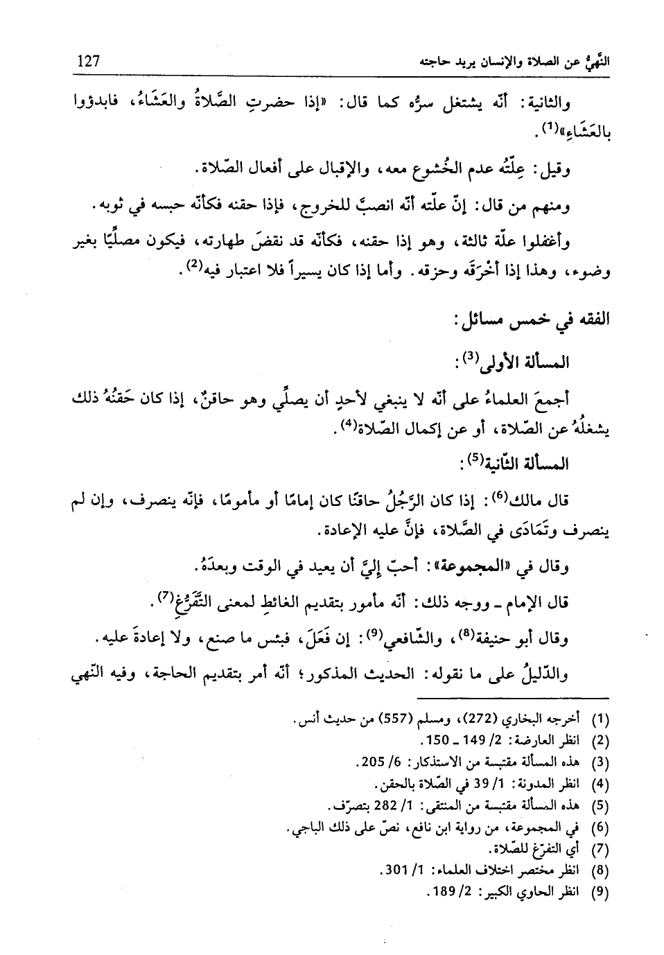 والدّليلُ على ما نقوله: الحديث المذكور؛ أنّه أمر بتقديم الحاجة، وفيه النّهي