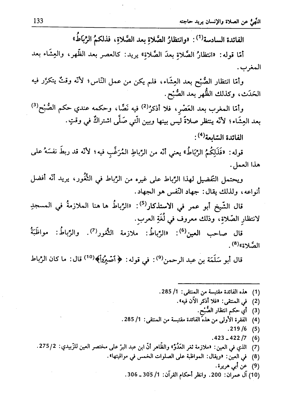 (¬1) هذه الفائدة مقتبسة من المنتقى: 1/ 285.