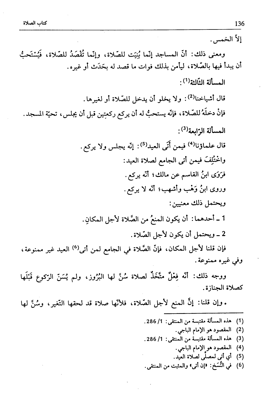 (¬3) هذه المسألة مقتبسة من المننقى: 1/ 286.