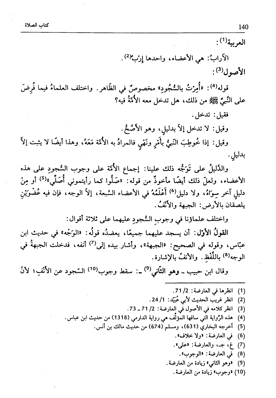 القولُ الأوّل: أنّ يسجد عليهما جميعًا، يعضدُه قولُه: "الوَجْه" في حديث ابن عبّاس، وقوله في الصّحيح: "الجبهة"، وأشار بيده إلى (¬7) أنفه، فدخلت الجبهةُ في الوجه (¬8) باللَّفظِ. والأنفُ با لاشارة.