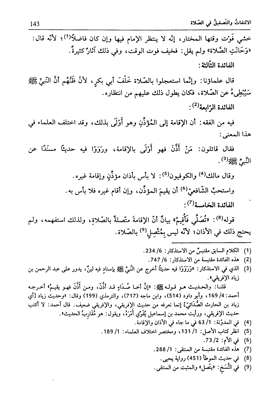(¬7) هذه الفائدة مقتبسة من المنتقى: 1/ 288.