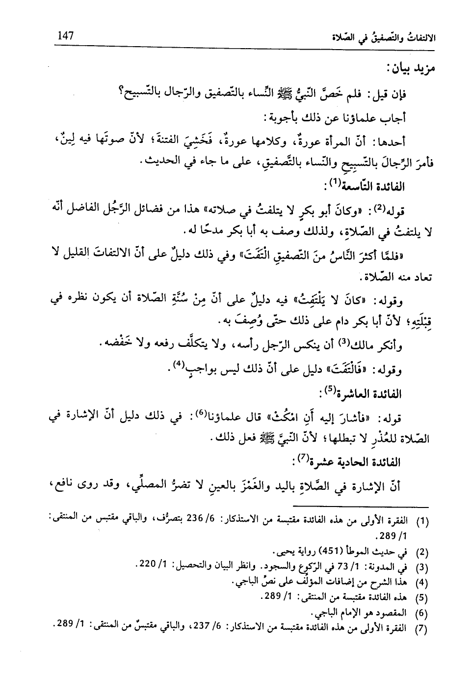 (¬1) الفقرة الأولى من هذه الفائدة مقتبسة من الاستذكارت 6/ 236 بتصرُّف، والباقي مقتبس من المنتقى: 1/ 289.