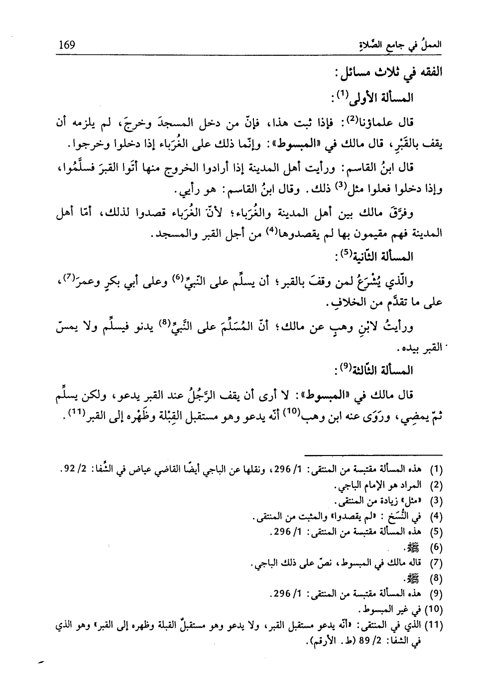 (¬1) هذه المسألة مقتبسة من المنتقى: 1/ 296، ونقلها عن الباجي أيضًا القاضي عياض في الشِّفا: 2/ 92.