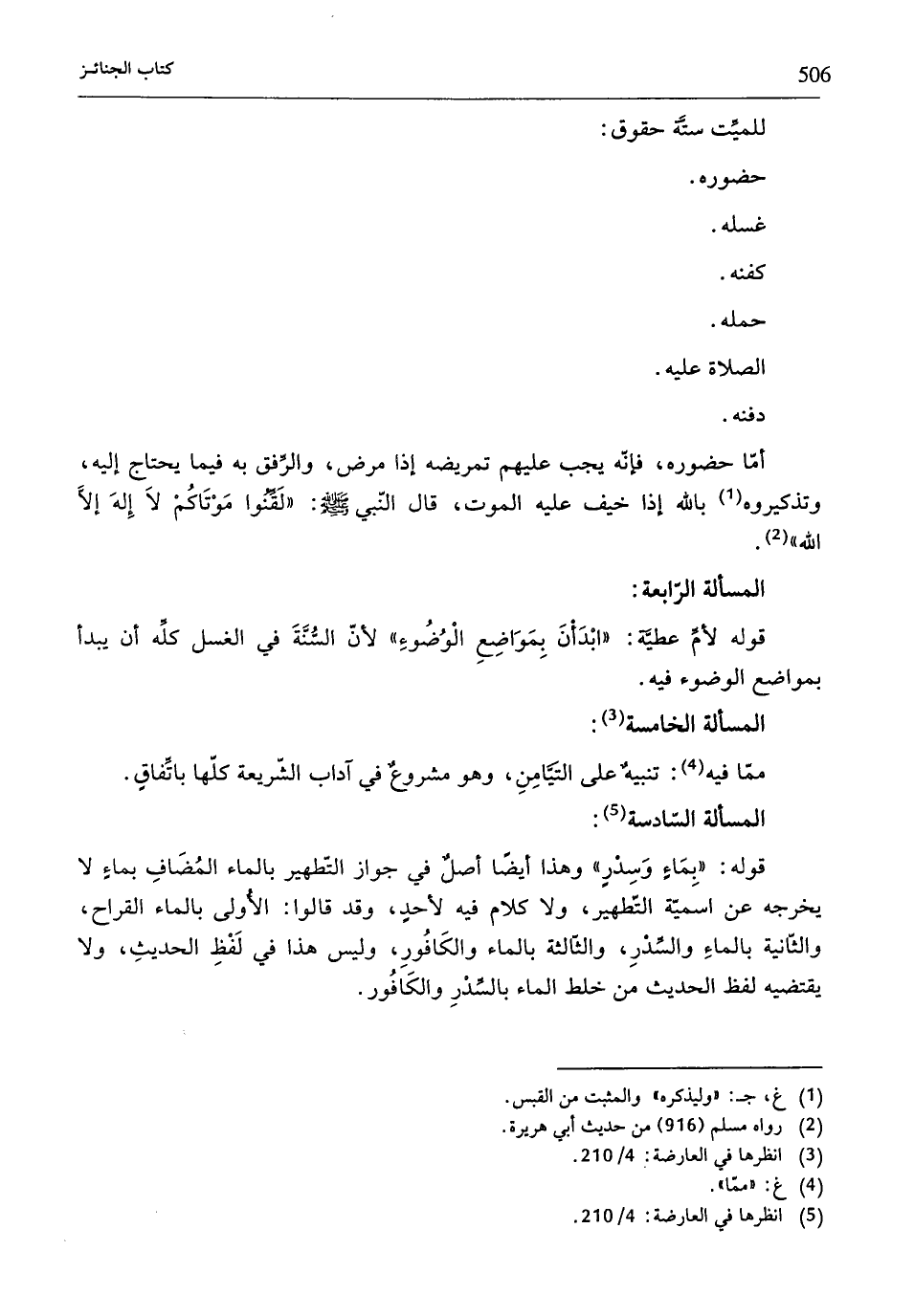 للميِّت ستَّة حقوق: