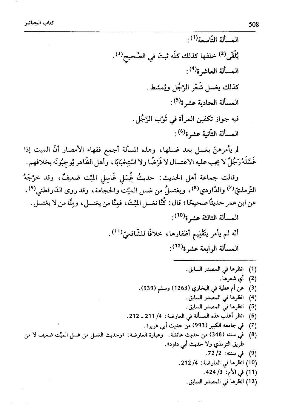 (¬8) في سننه (348) من حديث عائشة. وعبارة العارضة: "وحديث الغسل من غسل الميِّت ضعيف لا من طريق التّرمذيّ ولا حديث أبي داود".