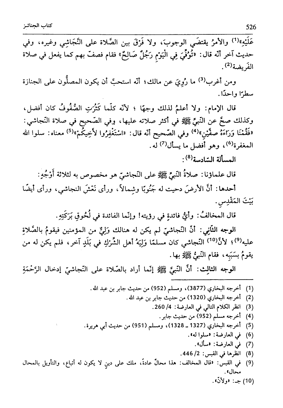 قال علماؤنا: صلاةُ النّبيِّ - صلّى الله عليه وسلم - على النَّجاشيّ هو مخصوص به لثلاثة أَوْجُهٍ:
