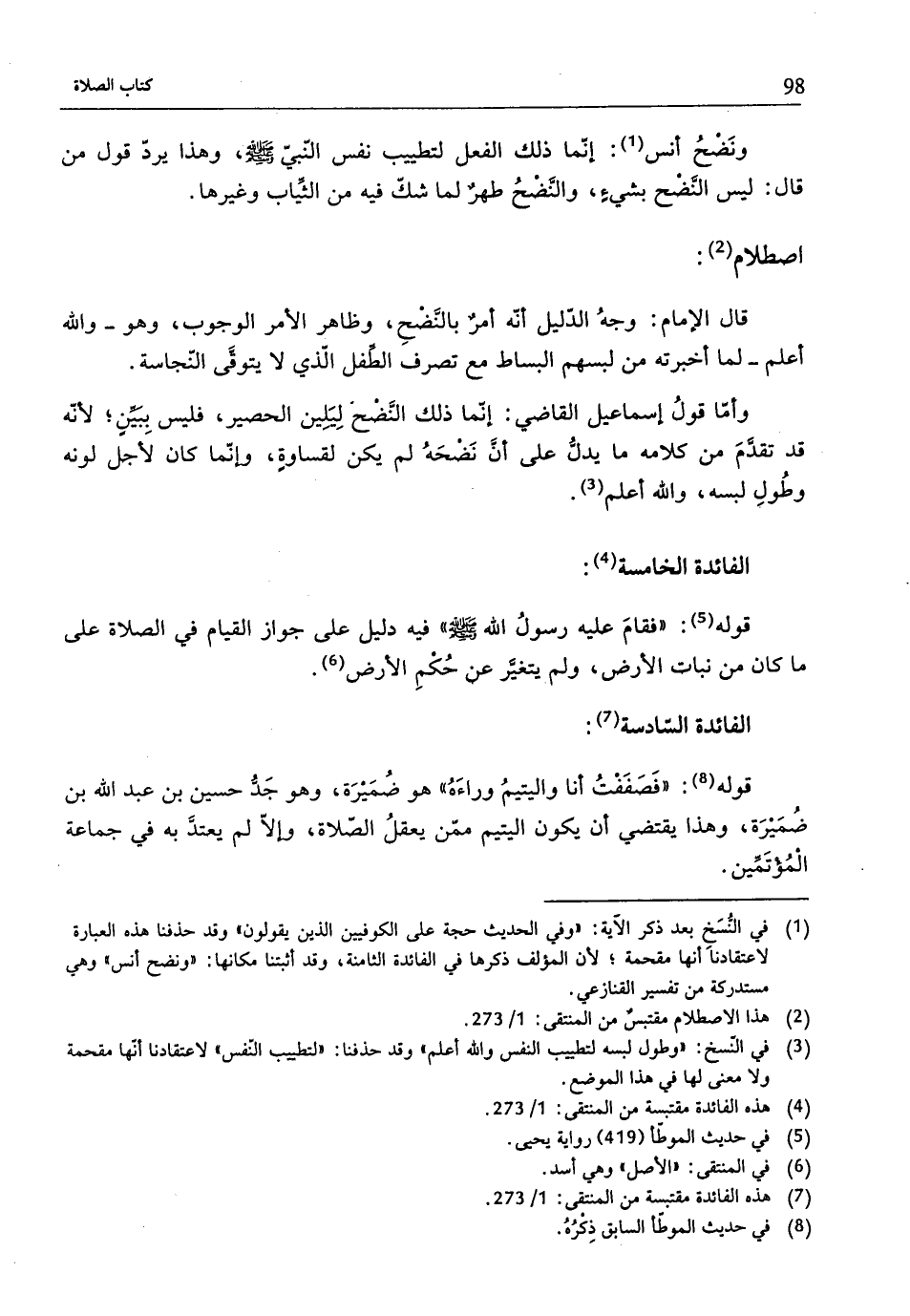 (¬7) هذه الفائدة مقتبسة من المنتقى: 1/ 273.