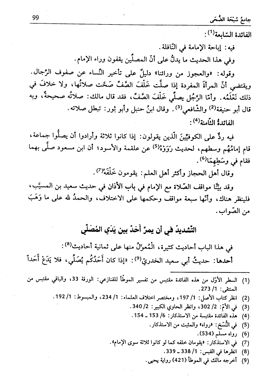 (¬1) السطر الأوّل من هذه الفائدة مقتبس من تفسير الموطَّأ للقنازعي: الورقة 33، والباقي مقتبس من المنتقى: 1/ 273.