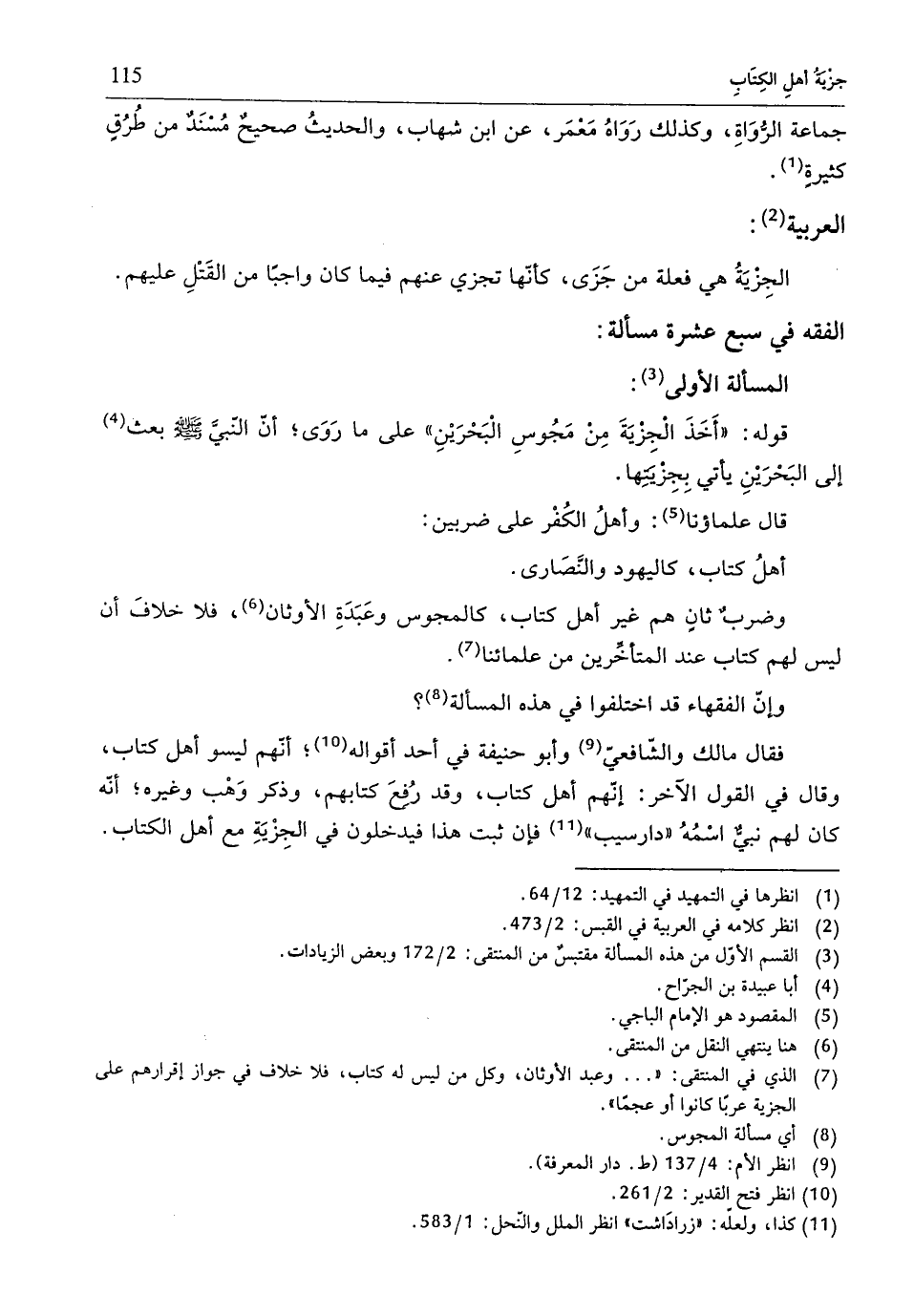 (¬7) الّذي في المنتقى: " ... وعبد الأوثان، وكل من ليس له كتاب، فلا خلاف في جواز إقرارهم على الجزية عربًا كانوا أو عجمًا".