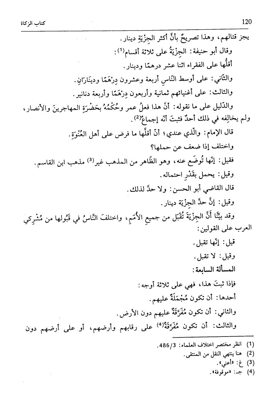 وقد بيَّنَّا أَن الجِزْيَةَ تُقْبَل من جميعِ الأُمَمِ، واختلفَ النَّاسُ في قَبُولها من مُشْركي العرب على القولين: