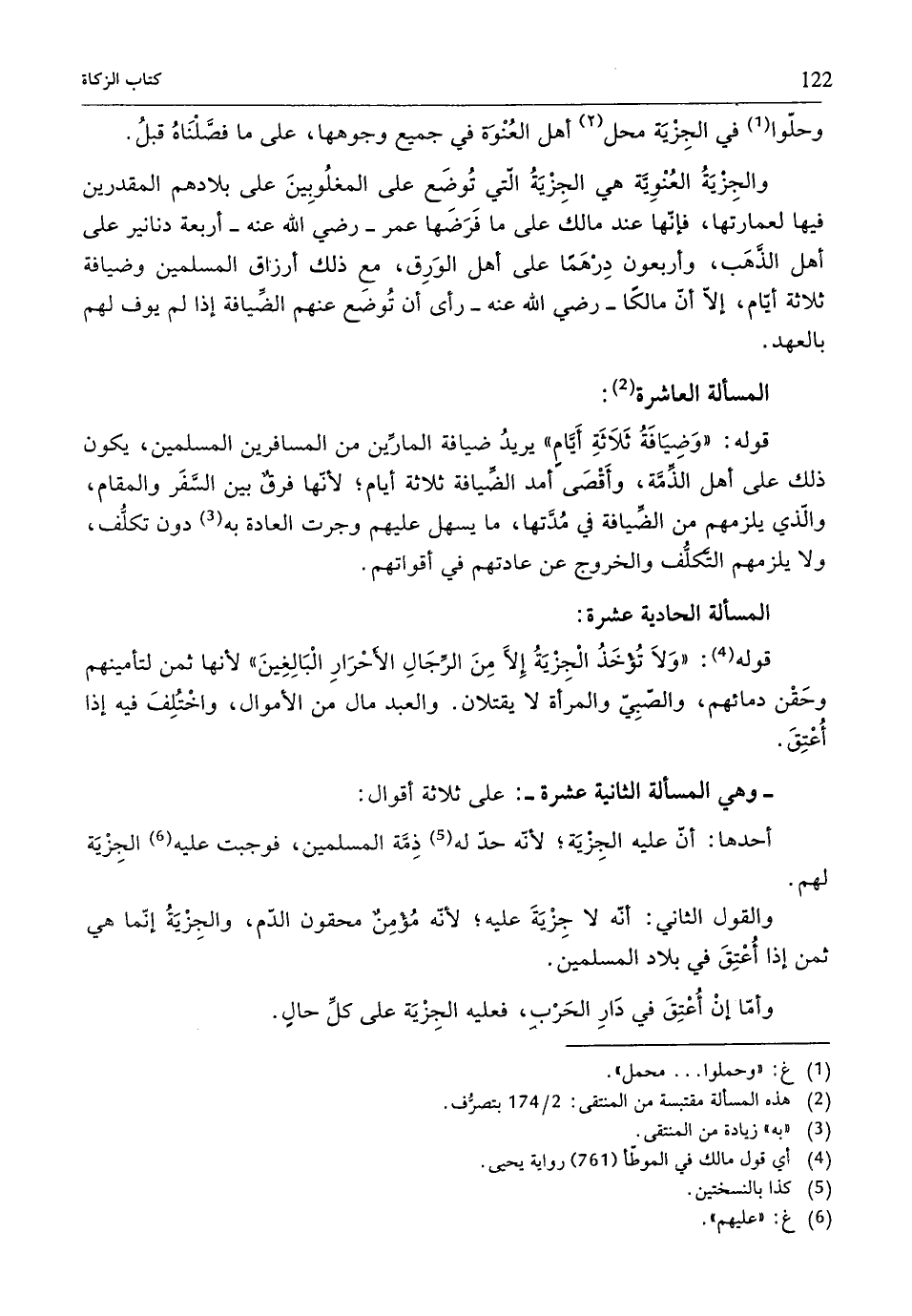 (¬2) هذه المسألة مقتبسة من المنتقى: 2/ 174 بتصرُّف.