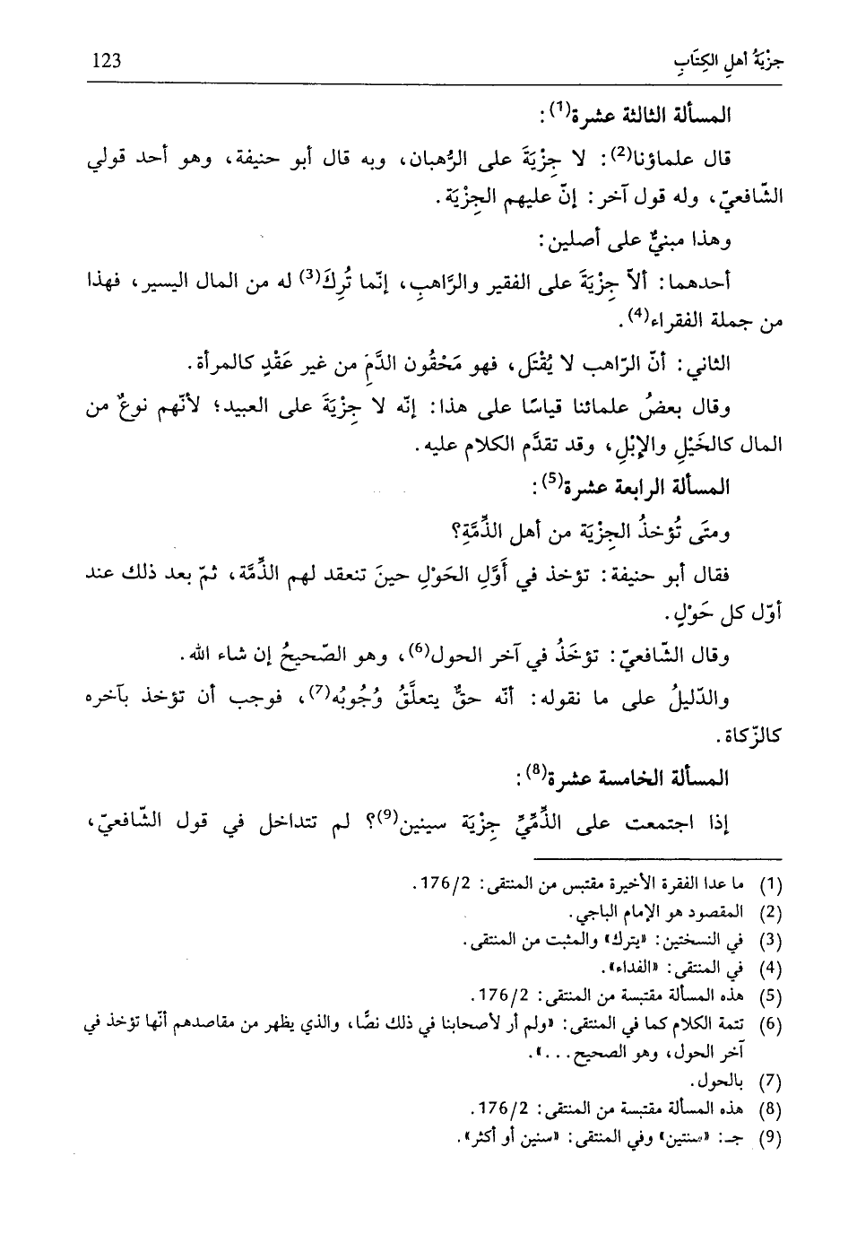 (¬5) هذه المسألة مقتبسة من المنتقى: 2/ 176.