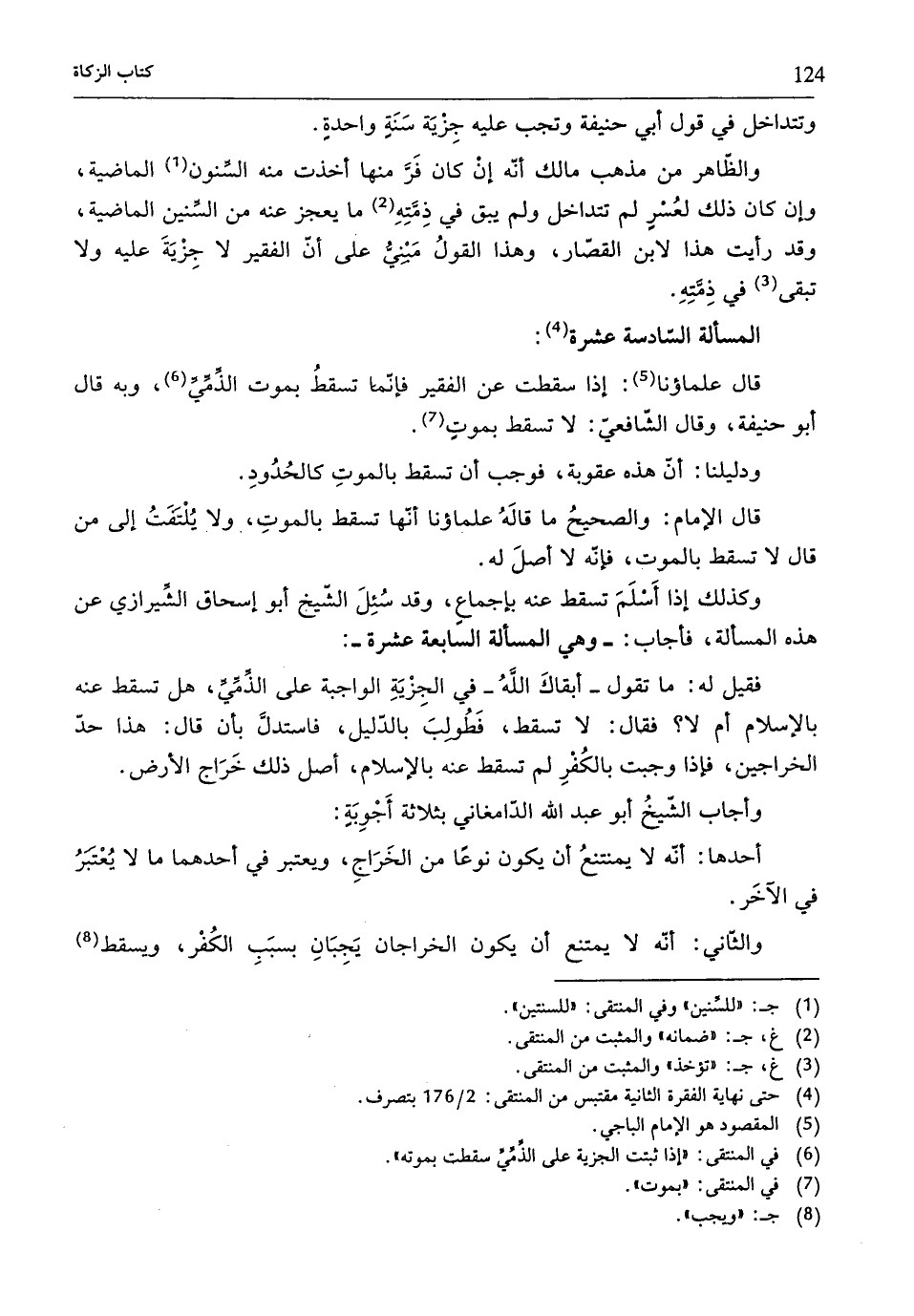 (¬6) في المنتقى "إذا ثبئت الجزية على الذِّمِّيِّ سقطت بموته".