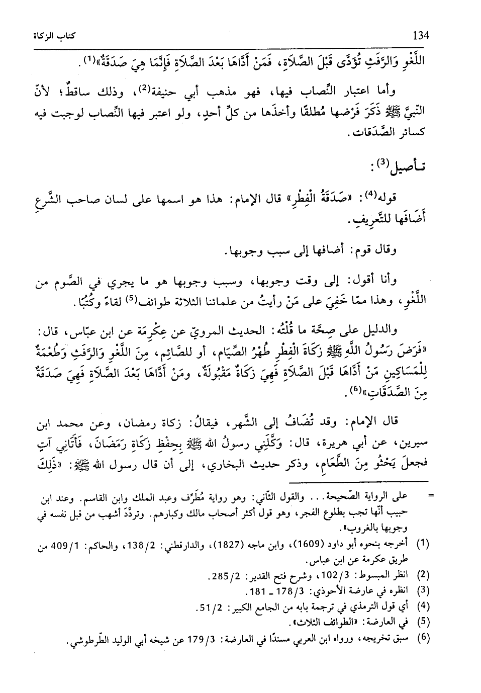 قوله (¬4): "صَدَقَةُ الْفِطْرِ" قال الإمام: هذا هو اسمها على لسان صاحب الشَّرعِ أَضَافَها للتَّعرِيفِ.
