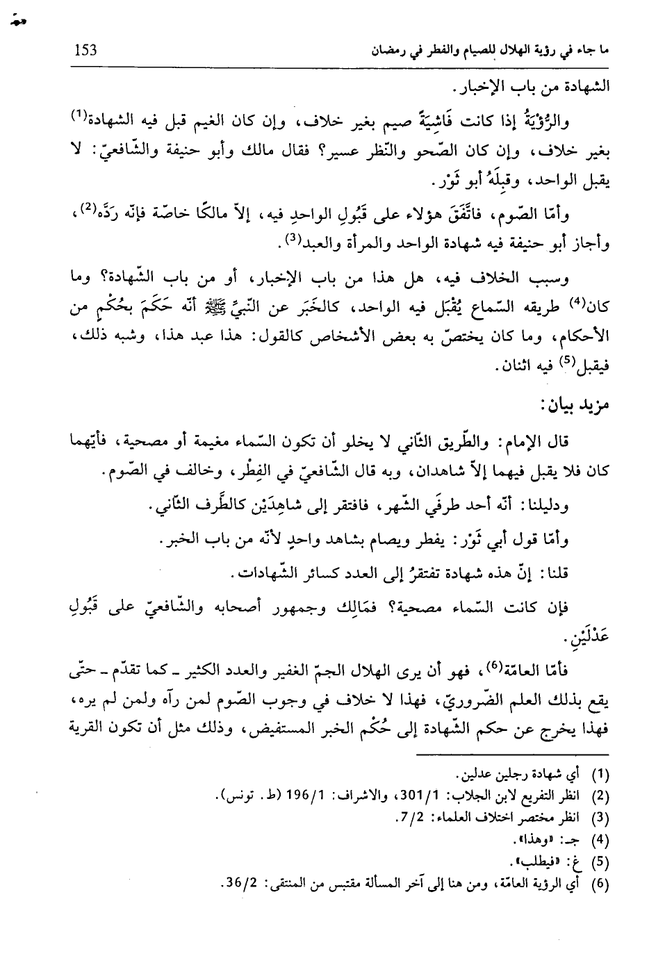 (¬6) أي الرؤية العامّة، ومن هنا إلى آخر المسألة مقتبس من المنتقى: 2/ 36.