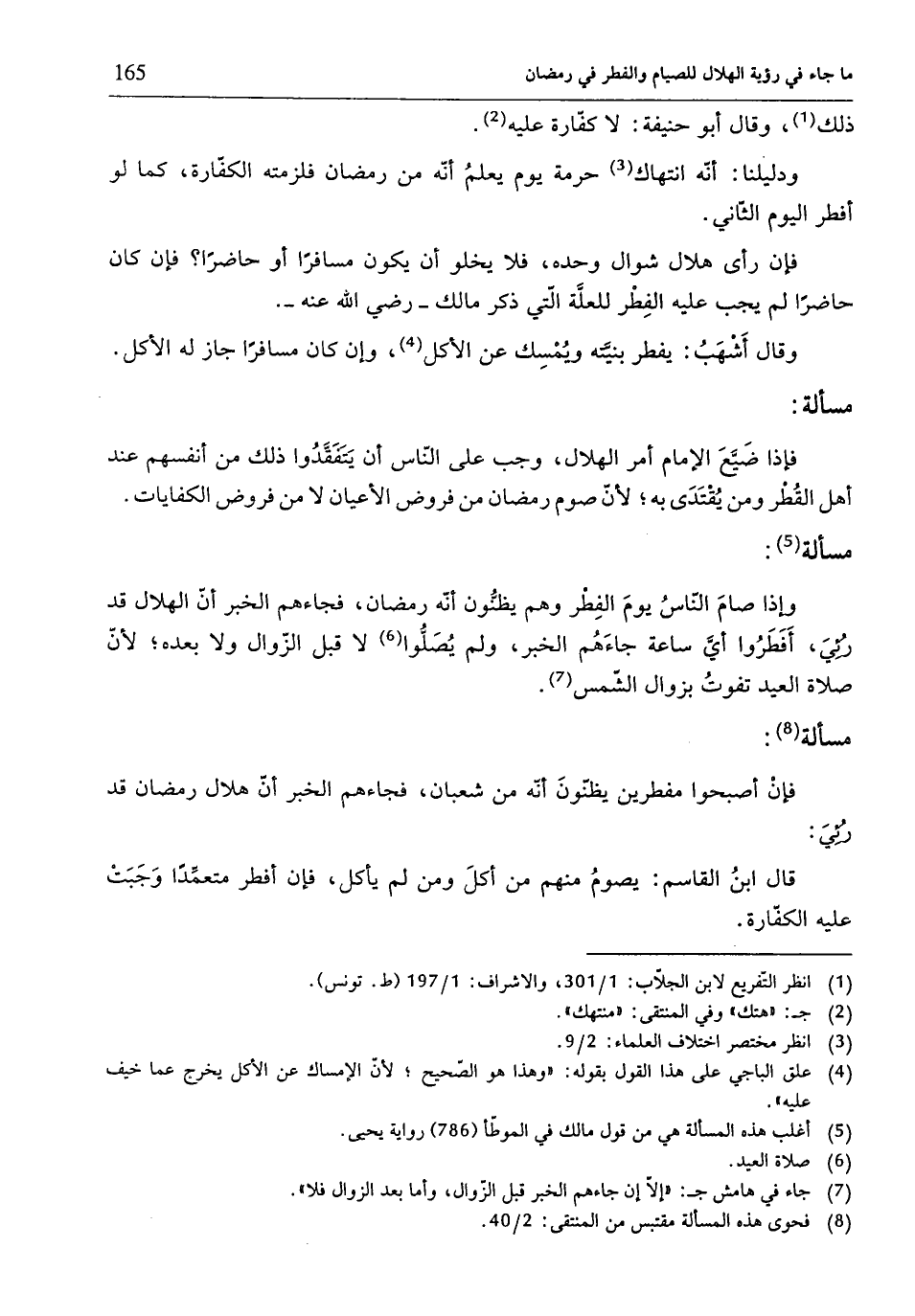(¬1) انظر التّفريع لابن الجلّاب: 1/ 301، والإشراف: 1/ 197 (ط. تونس).