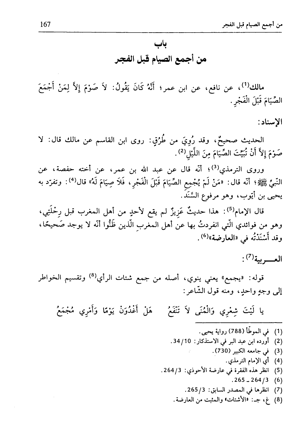 مالك (¬1)، عن نافع، عن ابن عمر؛ أَنَّهُ كَانَ يَقُولُ: لَا صَوْمَ إِلَّا لِمَنْ أَجْمَعَ الصِّيامَ قَبْلَ الْفَجْرِ.