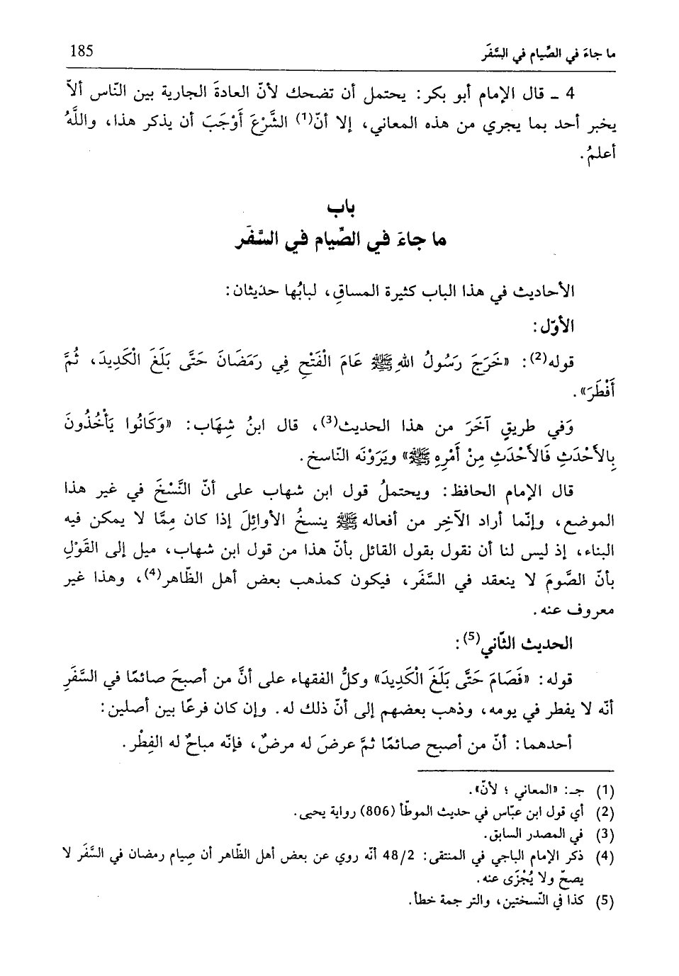 (¬4) ذكر الإمام الباجي في المنتقى: 2/ 48 أنّه روي عن بعض أهل الظّاهر أنّ صِيام رمضان في السَّفَر لا يصحّ ولا يُجْزَى عنه.