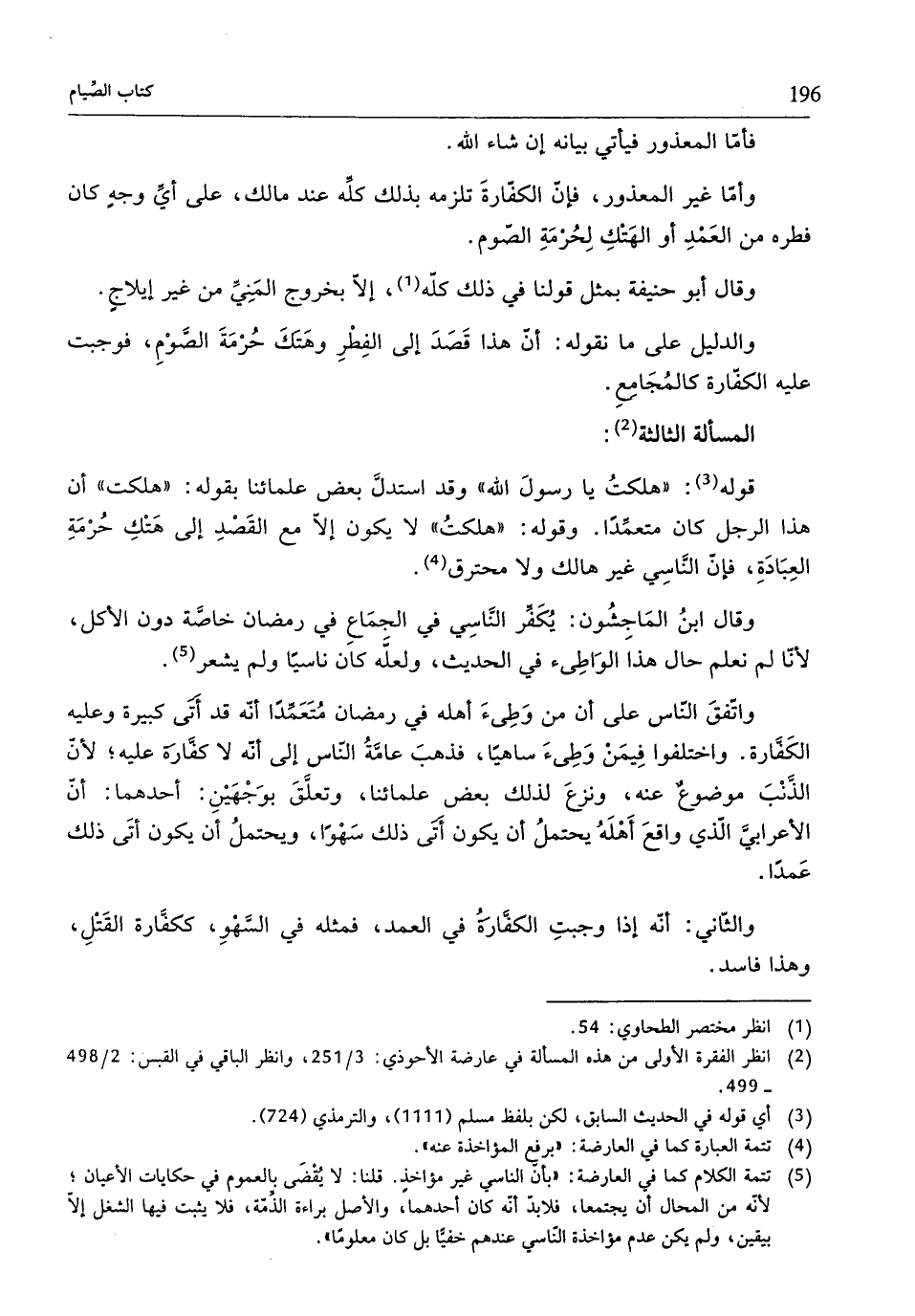 (¬2) انظر الفقرة الأولى من هذه المسألة في عارضة الأحوذي: 3/ 251، وانظر الباقي في القبس: 2/ 498 - 499.