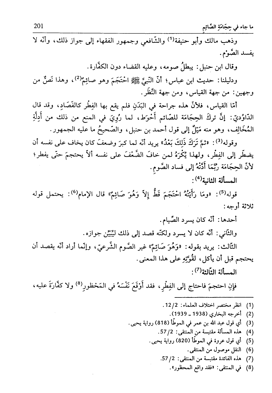 (¬4) هذه المسألة مقتبسة من المنتقى: 2/ 57.
