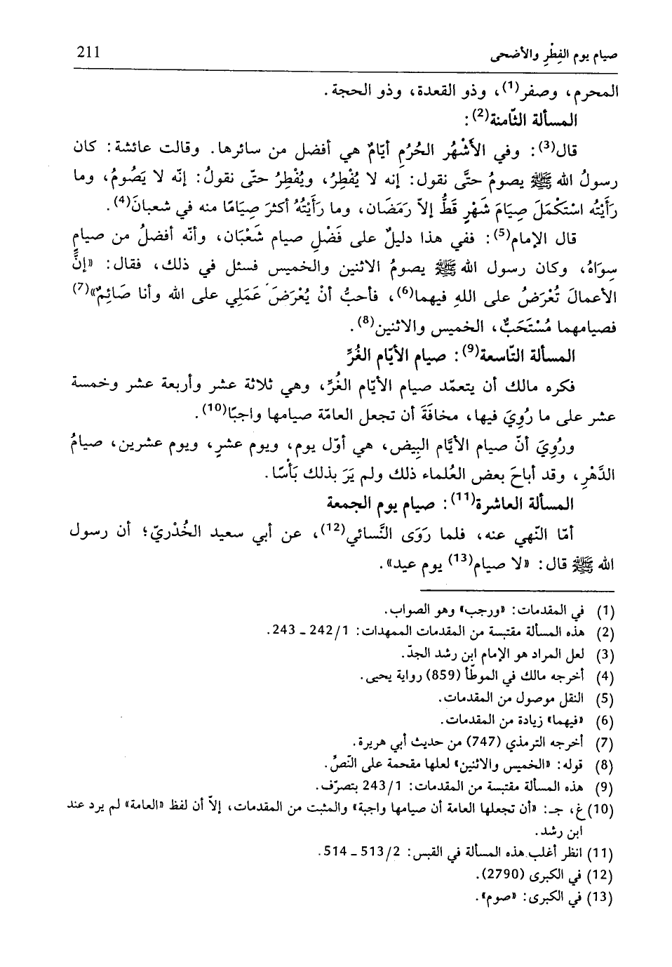 (¬9) هذه المسألة مقتبسة من المقدِّمات: 1/ 243 بتصرّف.
