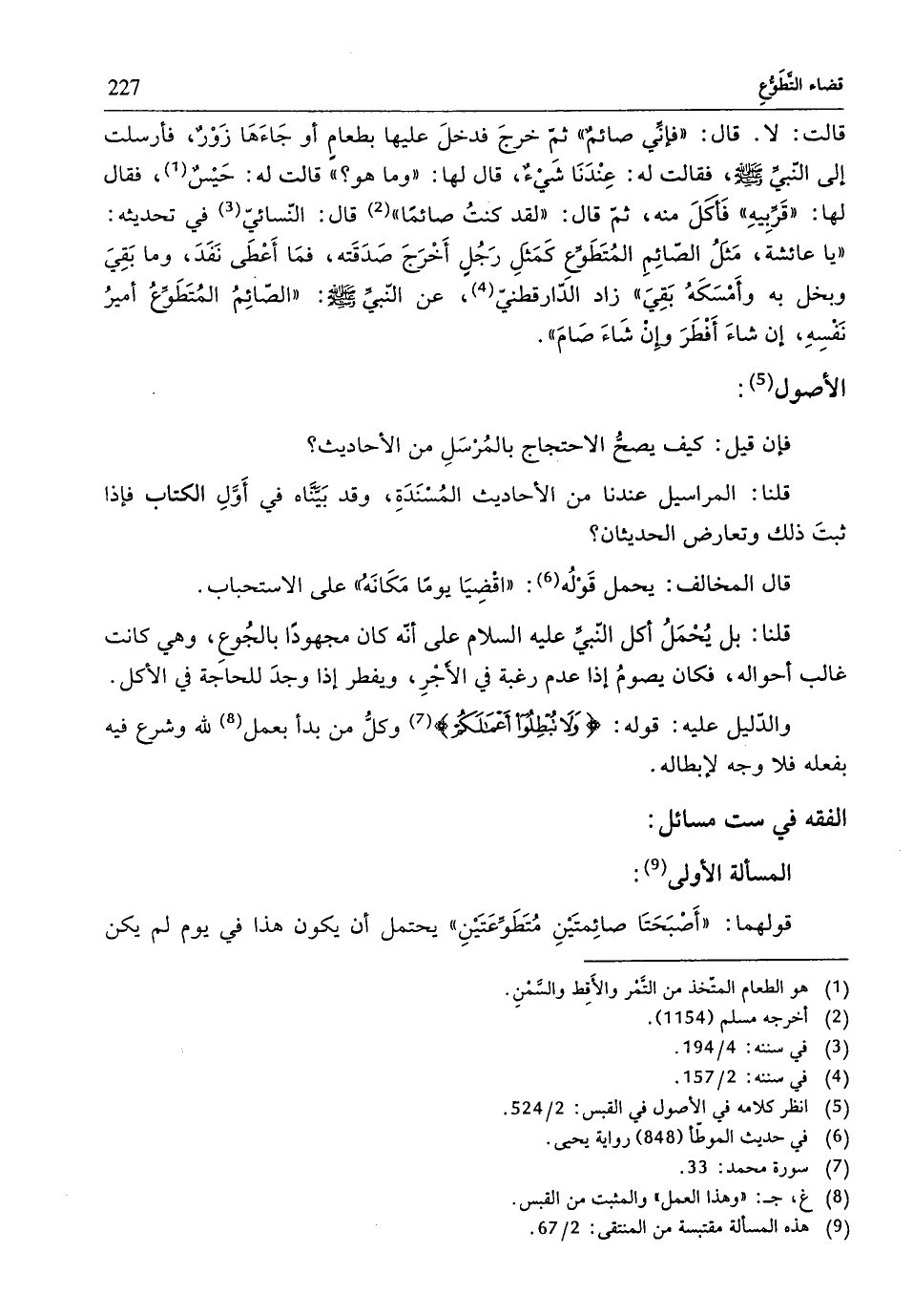 (¬9) هذه المسألة مقتبسة من المنتقى: 2/ 67.