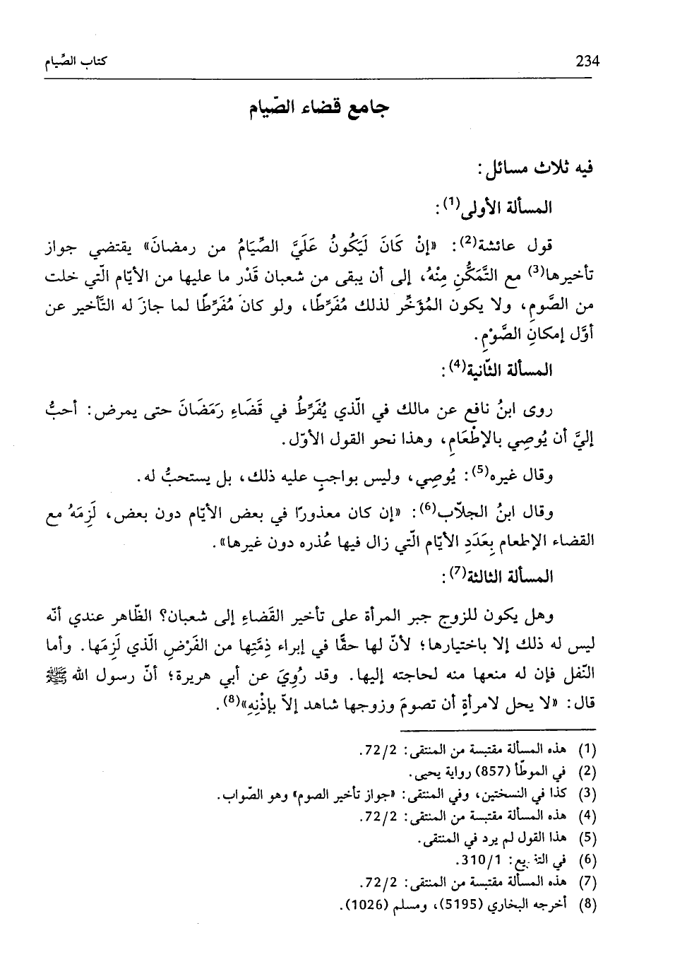 (¬7) هذه المسألة مقتبسة من المنتقى: 2/ 72.