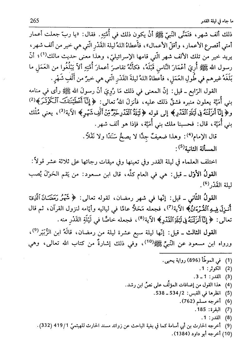 اختلف العلّماء في ليلة القدر وفي تعينها وفي ميقات رجائها على ثلاثة عشر قولًا: القولُ الأوّل - قيل: هي في العام كلِّه، قال ابن مسعود: من يَقم الحَوْلَ يُصب ليلة القَدْر (¬6).