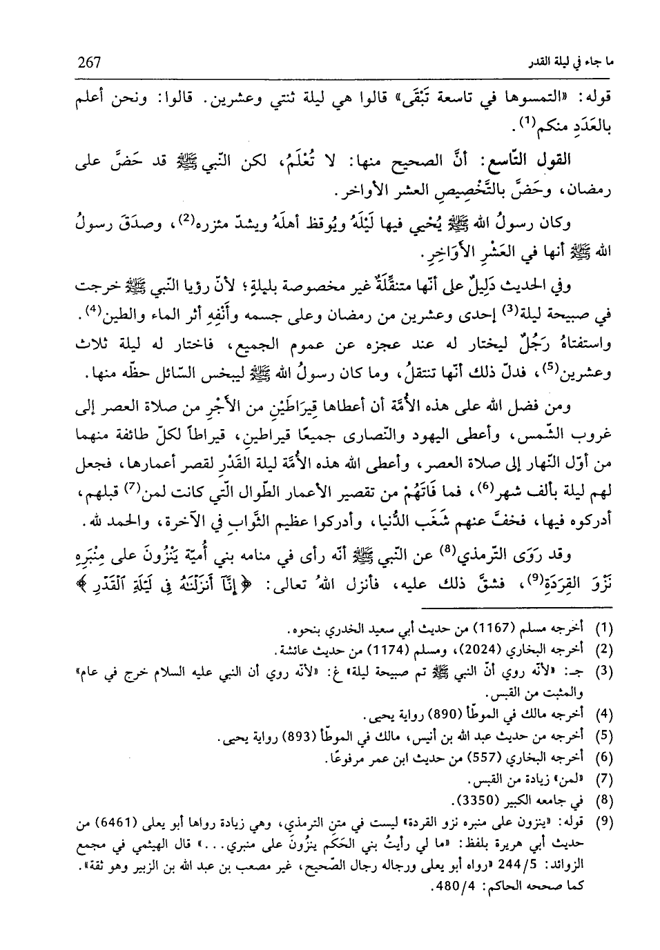 وقد رَوَى التّرمذيّ (¬8) عن النّبيّ - صلّى الله عليه وسلم - أنّه رأى في منامه بني أُميّة يَنْزُونَ على مِنْبَرِهِ نذزْوَ القِرَدَةِ (¬9)، فشقَّ ذلك عليه، فأنزل اللهُ تعالى: {إِنَّا أَنْزَلْنَاهُ فِي لَيْلَةِ الْقَدْرِ}