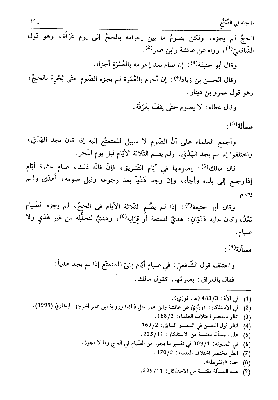 (¬9) هذه المسألة مقتبسة من الاستذكار: 11/ 229.