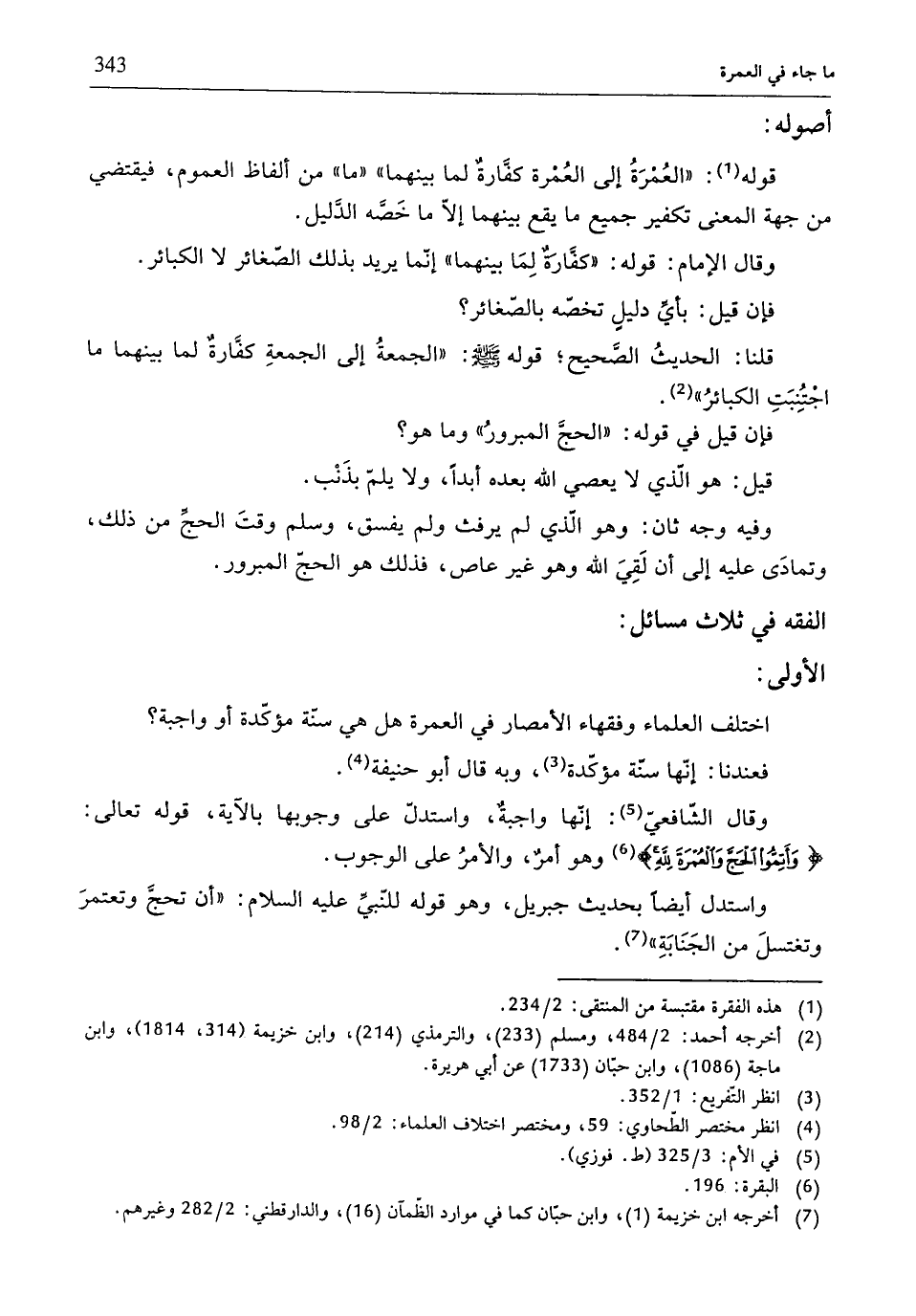 (¬1) هذه الفقرة مقتبسة من المنتقى: 2/ 234.
