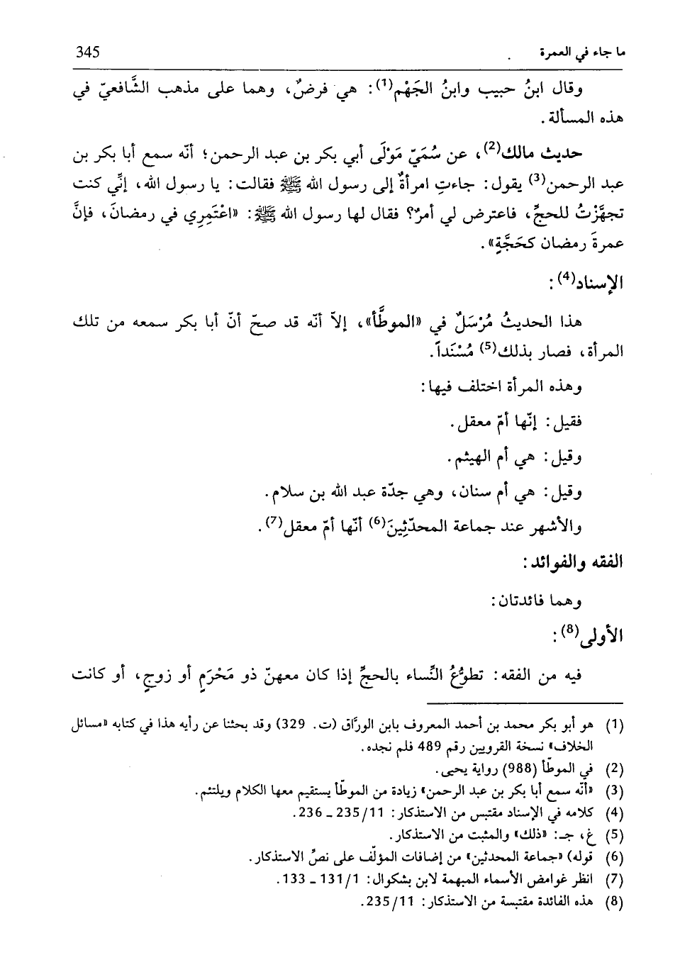 (¬8) هذه الفائدةُ مقتبسة من الاستذكار: 11/ 235.