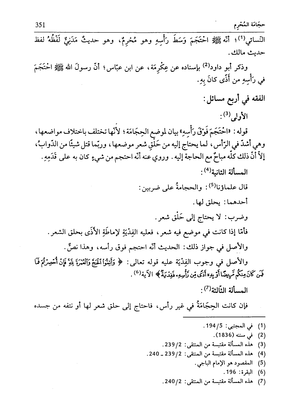 (¬7) هذه المسألة مقتبسة من المنتقى: 2/ 240.