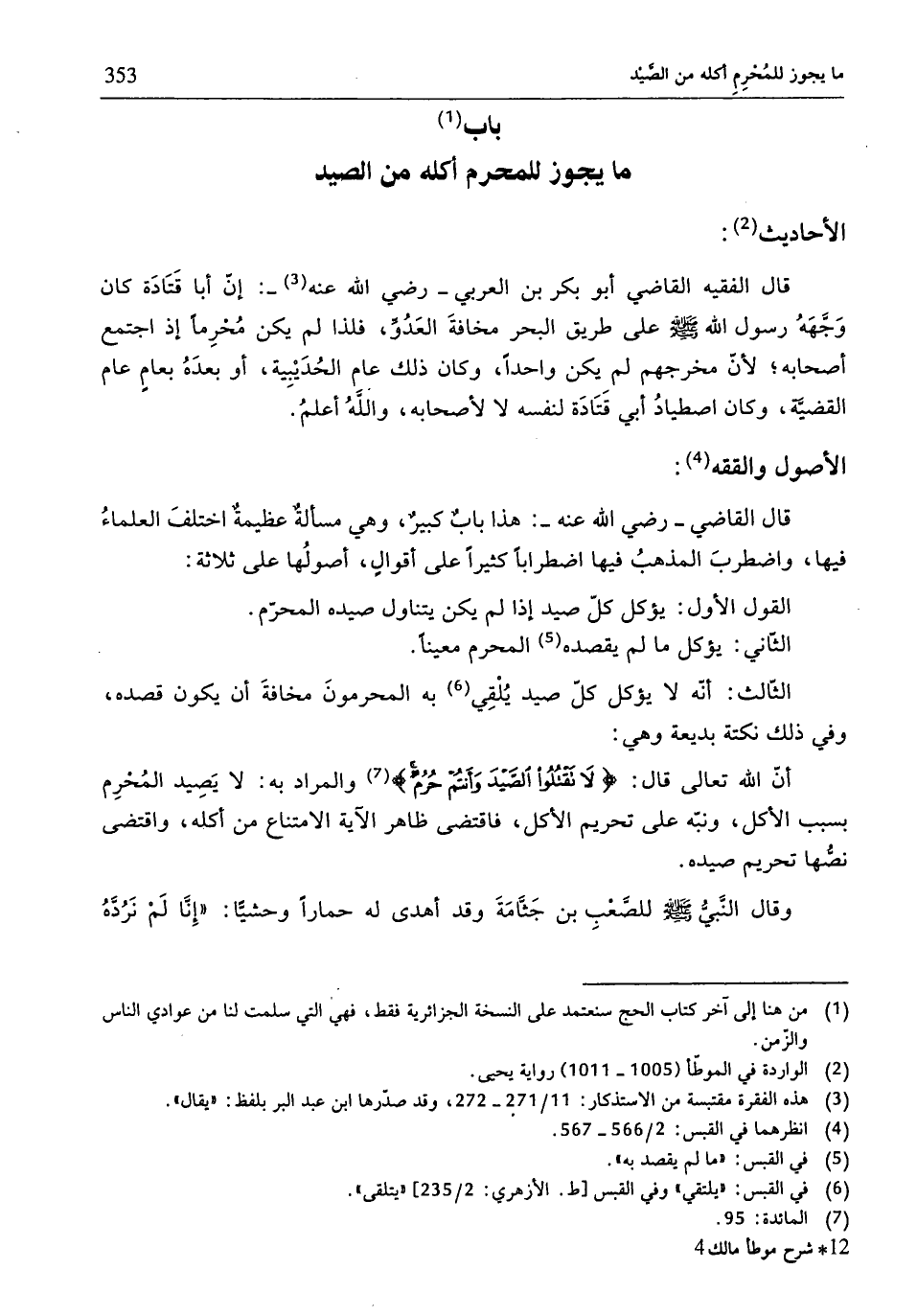 (¬1) من ها إلى آخر كتاب الحجّ سنعتمد على النسخة الجزائرية فقط، فهي الّتي سلمت لنا من عوادي النَّاس والزّمن.