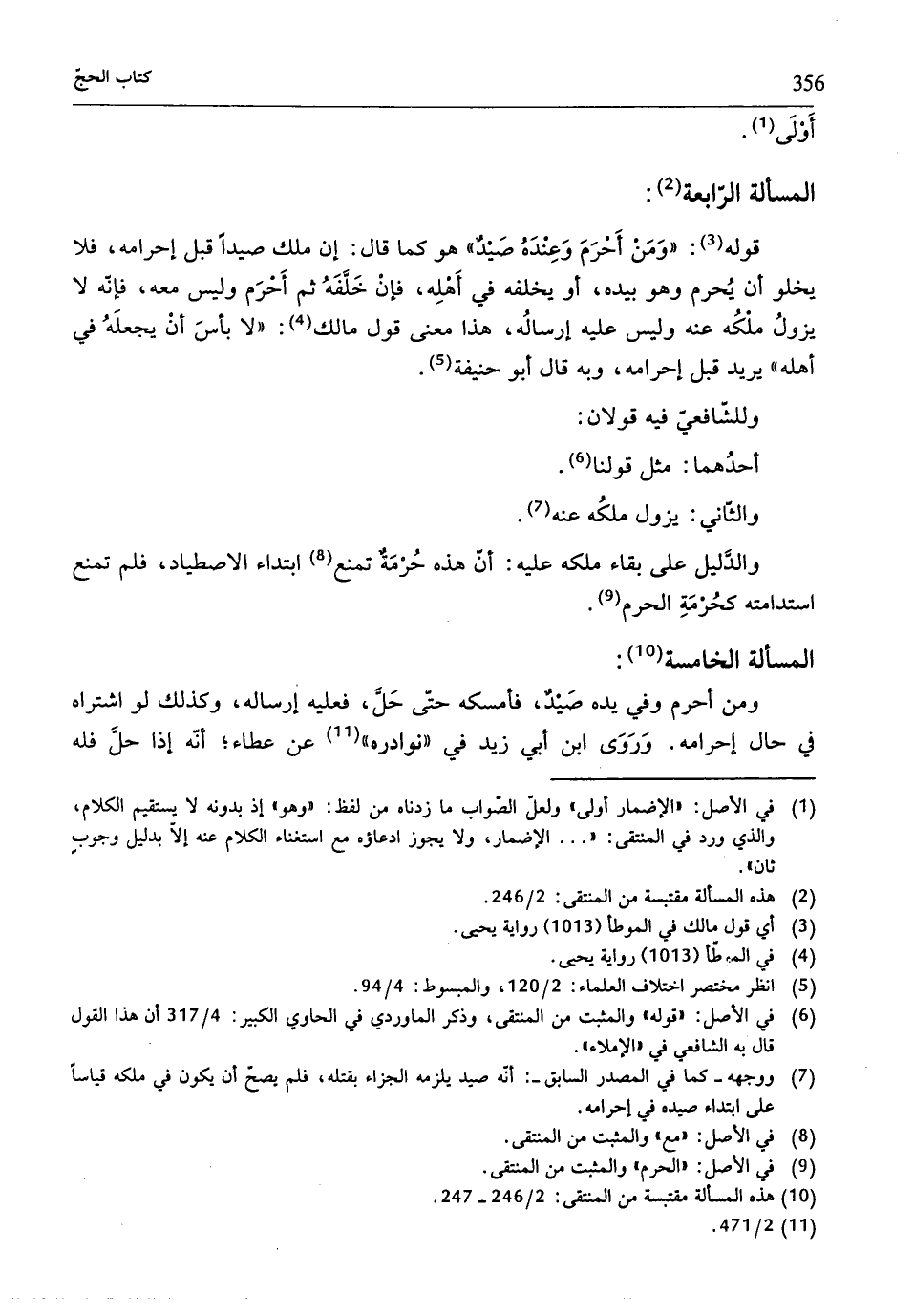 (¬10) هذه المسألة مقتبسة من المنتقى: 2/ 246 - 247.