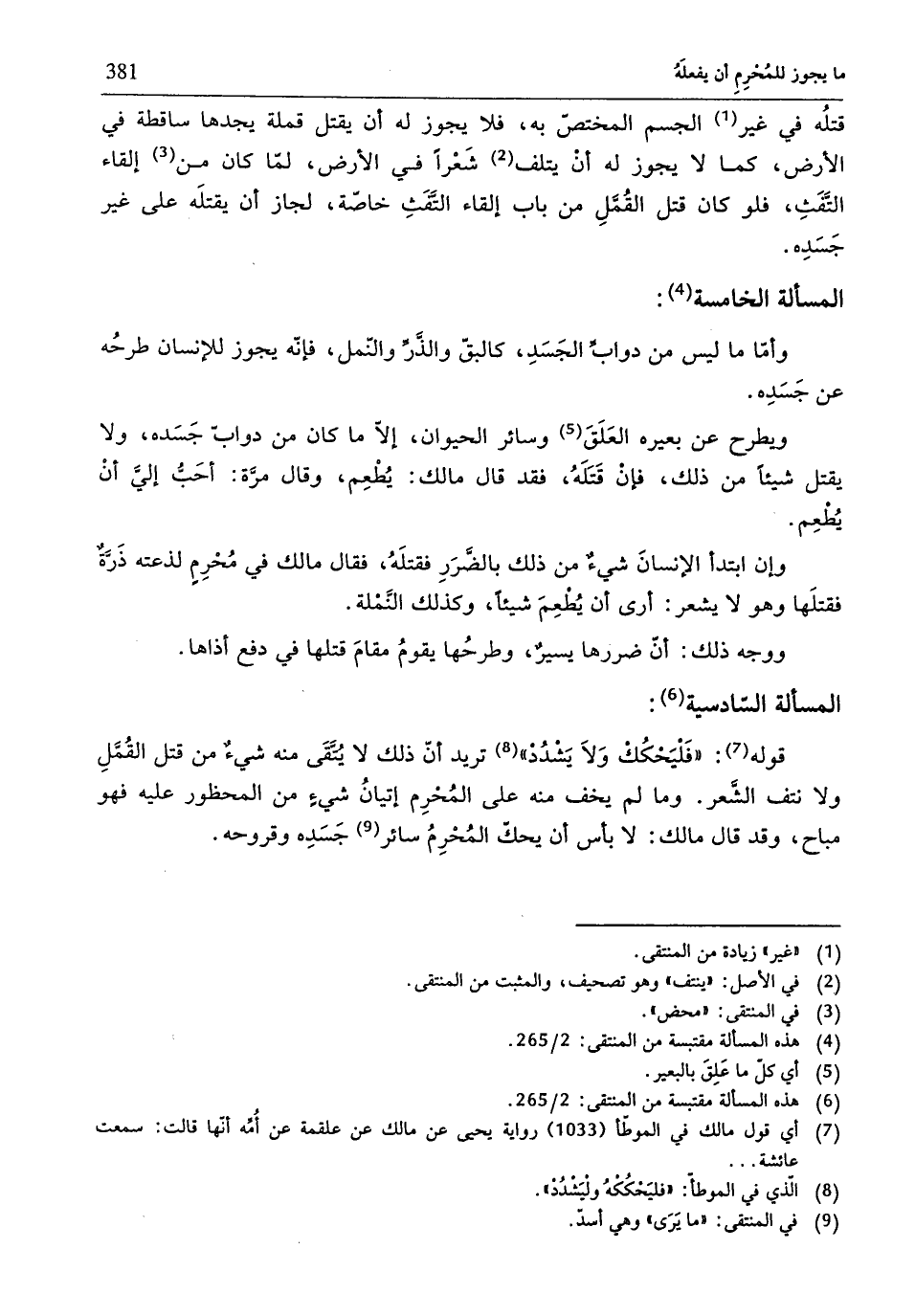 (¬6) هذه المسألة مقتبسة من المنتقى: 2/ 265.