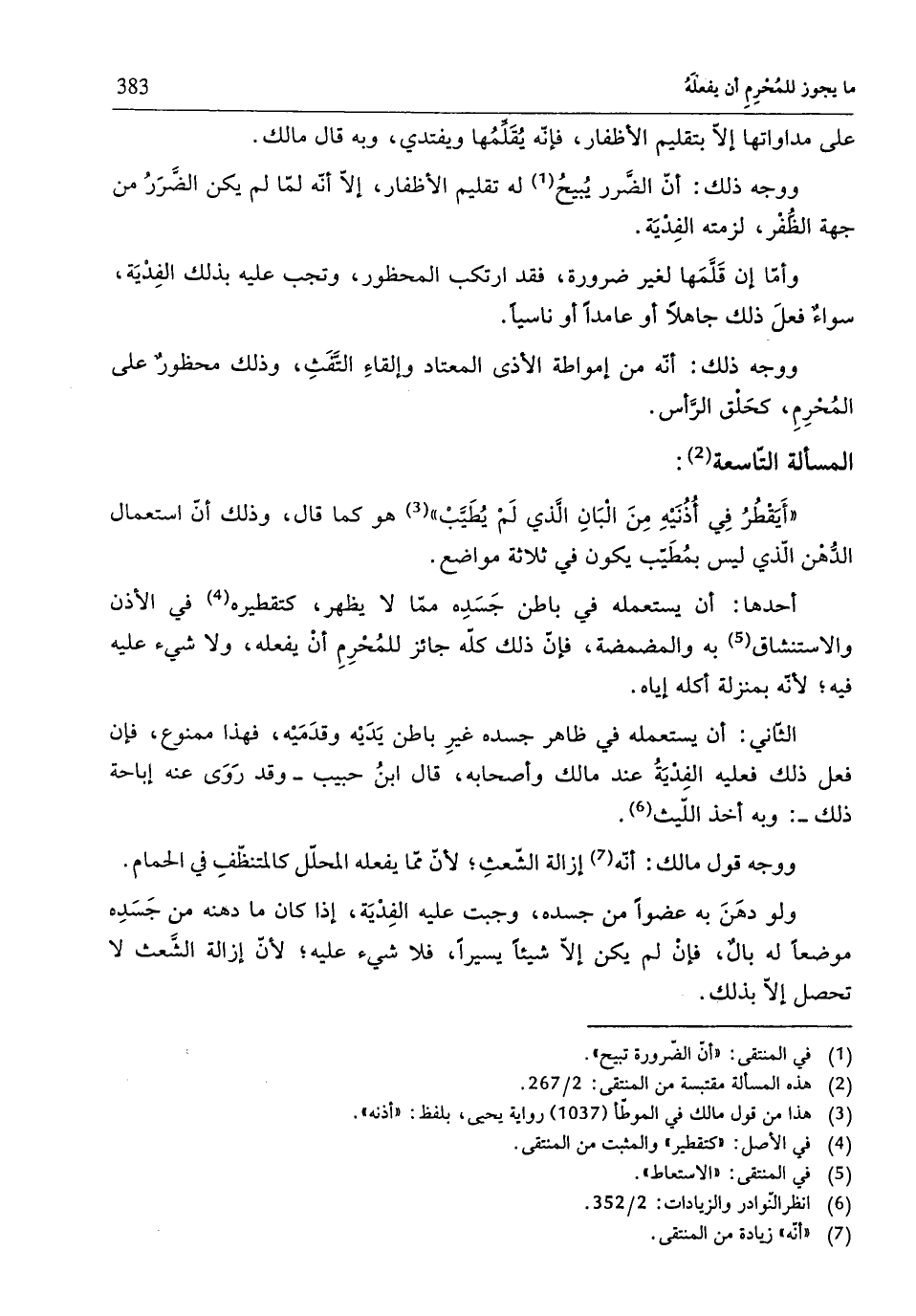 (¬2) هذه المسألة مقتبسة من المنتقى: 2/ 267.
