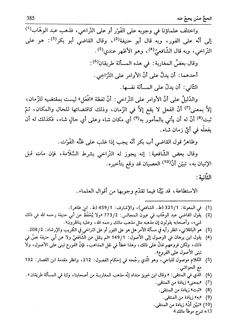 (¬3) هو الباقلاني، انظر رأيه في مسألة الأمر هل هو على الفور أو على التراخي في التّقريب والإرشاد: 2/ 208.