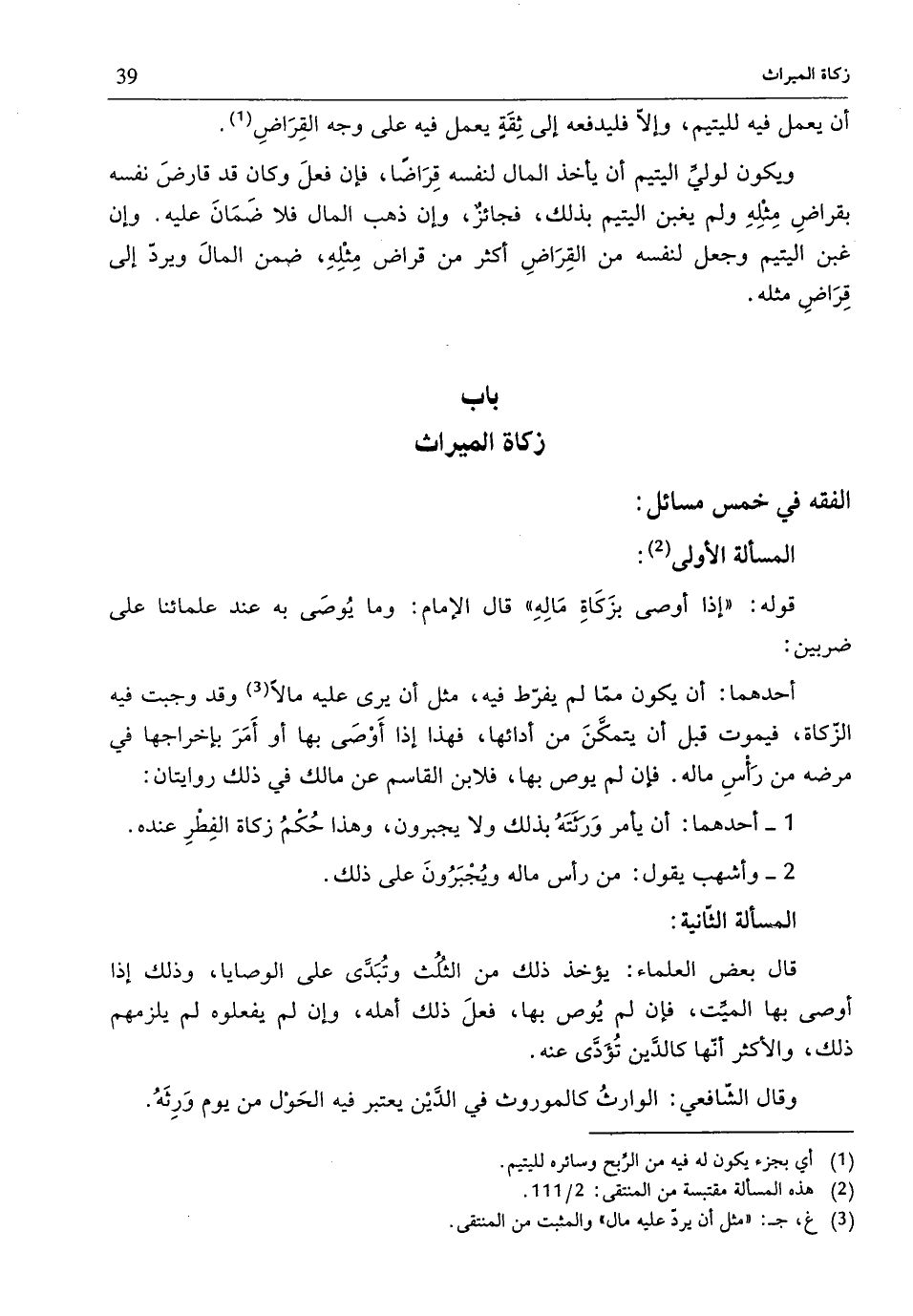 (¬2) هذه المسألة مقتبسة من المنتقى: 2/ 111.