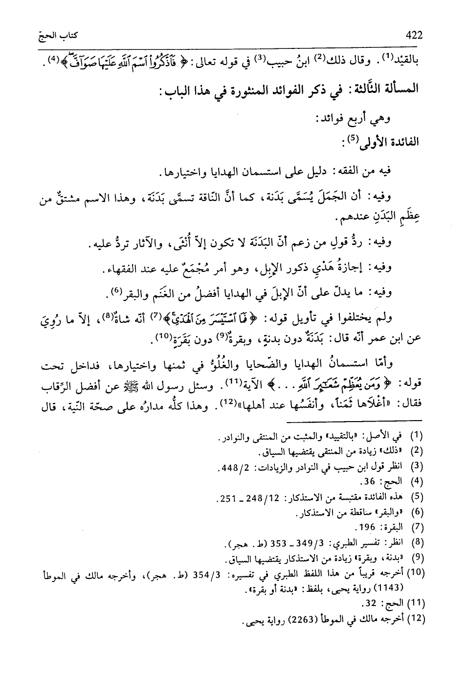 (¬5) هذه الفائدةُ مقتبسة من الاستذكار: 12/ 248 - 251.